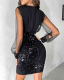 Black Zippered Pocket Patchwork Long Sleeved Dress