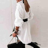Blue Women'S Long Sleeve Pocket Casual Dress