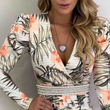 Black V-Neck Mesh Spliced Long Sleeved Dress