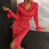 Blue Women'S Long Sleeve Pocket Casual Dress