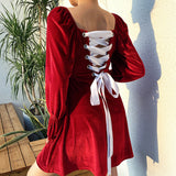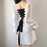 Black V-Neck Mesh Spliced Long Sleeved Dress