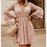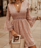Black V-Neck Mesh Spliced Long Sleeved Dress