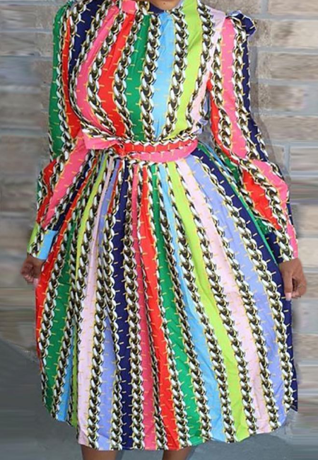 Blue Women'S Long Sleeve Pocket Casual Dress