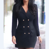 Blue Women'S Long Sleeve Pocket Casual Dress