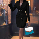Black Zippered Pocket Patchwork Long Sleeved Dress
