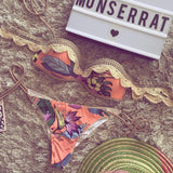 • Trend hot sell hand crocheted lace print a one-word shoulder swimsuit sexy two-piece bikini