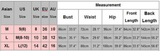 | AUS - size | AUS - size | UK - size | Europe - size | USA - size |