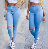 Women'S Fashion Casual Distressed Blue Jeans