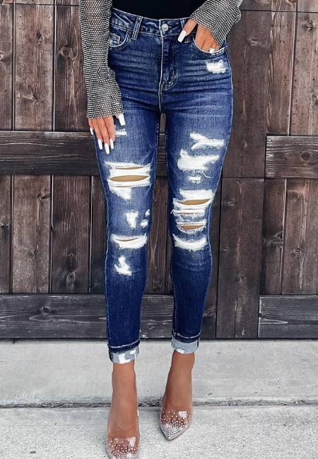 Women'S Fashion Casual Distressed Blue Jeans