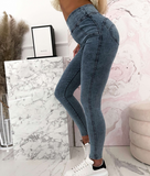 Tight High Waisted Button Elastic Denim Pants