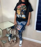Blue Printed Letters Ripped Jeans