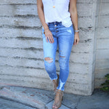 Women'S Fashion Casual Distressed Blue Jeans