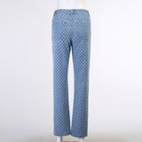 Blue Printed Letters Ripped Jeans