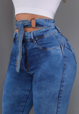 Tight High Waisted Button Elastic Denim Pants