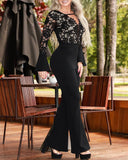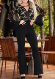 Casual Black V-Neck Stitching Long Sleeve Jumpsuit