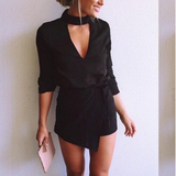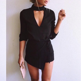 Casual Black V-Neck Stitching Long Sleeve Jumpsuit