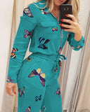 Casual Black V-Neck Stitching Long Sleeve Jumpsuit