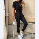 Casual Black V-Neck Stitching Long Sleeve Jumpsuit