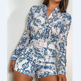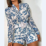 Casual Black V-Neck Stitching Long Sleeve Jumpsuit