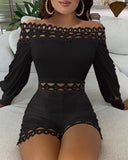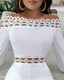 Black Lace Panel Long Sleeve Skinny Jumpsuit
