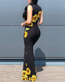 Casual Black V-Neck Stitching Long Sleeve Jumpsuit