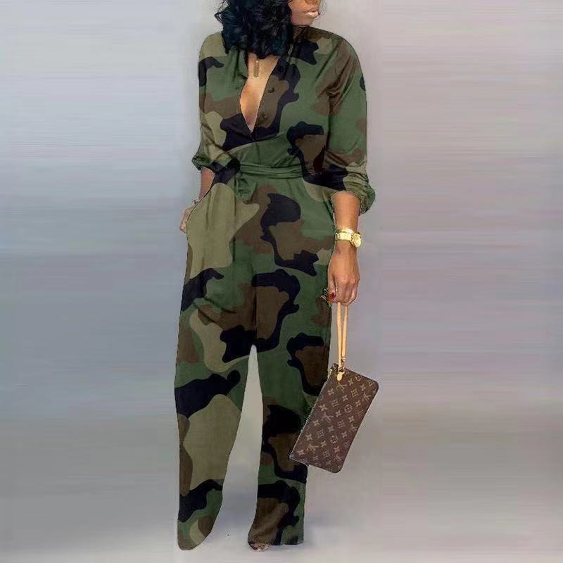 Button Casual Elegant Long Sleeve Jumpsuit