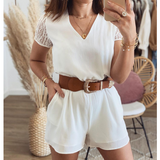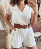 Casual Black V-Neck Stitching Long Sleeve Jumpsuit