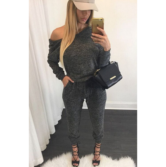 Casual Black V-Neck Stitching Long Sleeve Jumpsuit