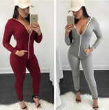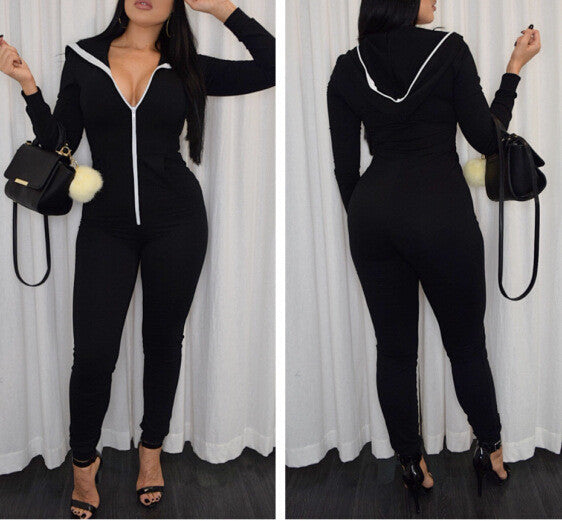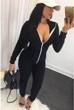 Casual Black V-Neck Stitching Long Sleeve Jumpsuit