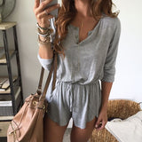 Casual Black V-Neck Stitching Long Sleeve Jumpsuit