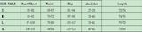 Sizes can vary according to style and fabrication of the garment.