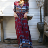 Blue Women'S Long Sleeve Pocket Casual Dress