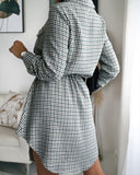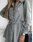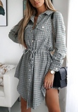 Blue Women'S Long Sleeve Pocket Casual Dress