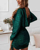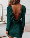 Casual Rhinestone Long Sleeved Tight Fitting Dress