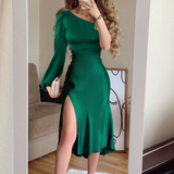 Casual Rhinestone Long Sleeved Tight Fitting Dress