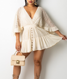 Black V-Neck Mesh Spliced Long Sleeved Dress