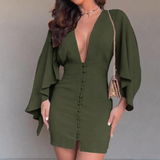 Casual Rhinestone Long Sleeved Tight Fitting Dress
