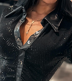 Casual Rhinestone Long Sleeved Tight Fitting Dress