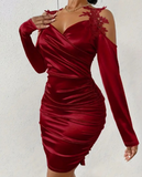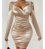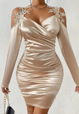 Casual Rhinestone Long Sleeved Tight Fitting Dress