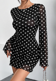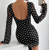 • Elegant Printed Round Neck Backless Long Sleeved Dress