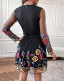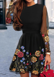 • Embroidered Mesh Spliced Long Sleeved Dress