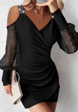 Casual Rhinestone Long Sleeved Tight Fitting Dress
