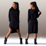 Black Zippered Pocket Patchwork Long Sleeved Dress