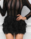 Black Sexy Mesh Long Sleeve Dress