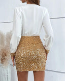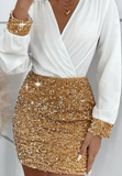 Casual Rhinestone Long Sleeved Tight Fitting Dress
