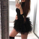 Black V-Neck Mesh Spliced Long Sleeved Dress