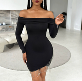 • Fashion Solid Color Splicing One Shoulder Dress