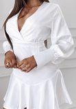 Black V-Neck Mesh Spliced Long Sleeved Dress
