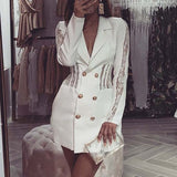 Black V-Neck Mesh Spliced Long Sleeved Dress