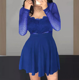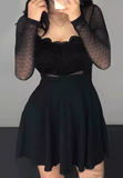 Black V-Neck Mesh Spliced Long Sleeved Dress